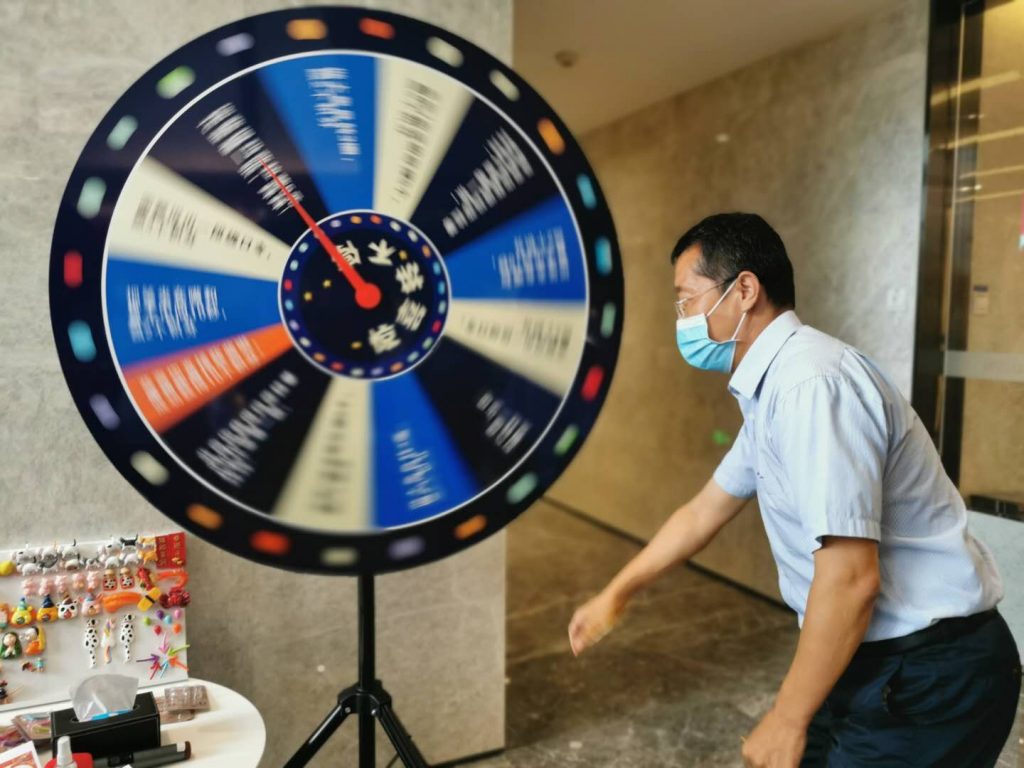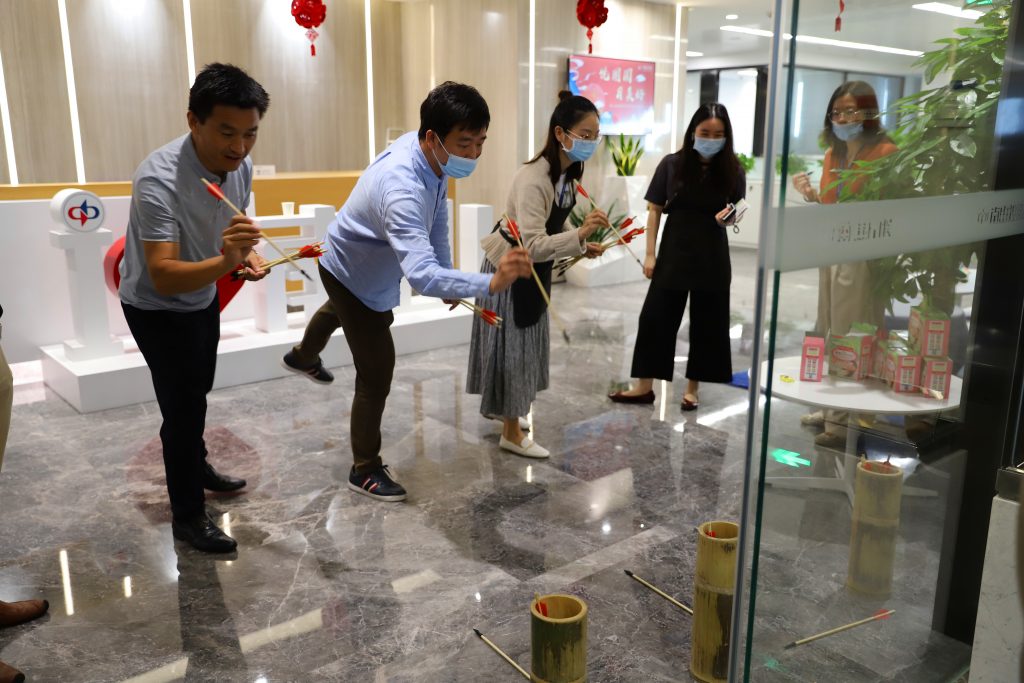 活動(dòng)現(xiàn)場(chǎng)還組織了幸運(yùn)大轉(zhuǎn)盤、投壺及“大珠小珠落玉盤”等一系列趣味互動(dòng)游戲,組員們協(xié)作完成挑戰(zhàn)、分組比賽贏禮品。大家在歡聲笑語(yǔ)中共同迎接中秋節(jié)國(guó)慶節(jié)的到來(lái)。