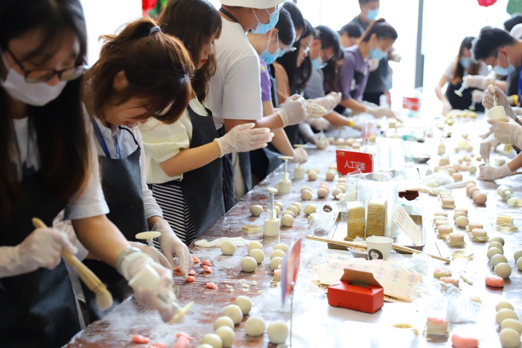 在活動(dòng)現(xiàn)場(chǎng),公司全體同事被分為5個(gè)大組,現(xiàn)場(chǎng)共同制作冰皮月餅。過(guò)程中,大家充分發(fā)揮團(tuán)隊(duì)的協(xié)作力、配合力及互動(dòng)性,現(xiàn)場(chǎng)氣氛歡快而熱烈。