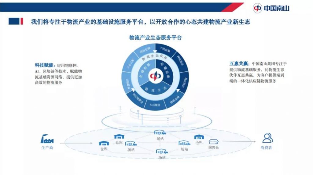 此外,在以物聯(lián)網(wǎng)、大數(shù)據(jù)、云計(jì)算、人工智能、區(qū)塊鏈等新興技術(shù)引領(lǐng)的新一輪科技浪潮下,未來(lái)科技將成為一體化供應(yīng)鏈物流服務(wù)的第一革新要素。這里的核心是把從原材料生產(chǎn)制造到倉(cāng)儲(chǔ)管理,到貨物運(yùn)輸,再到售后,通過(guò)新技術(shù)鏈接在一起。從而在產(chǎn)業(yè)端,為生產(chǎn)制造業(yè)實(shí)現(xiàn)智能化生產(chǎn)、網(wǎng)絡(luò)化協(xié)同、個(gè)性化定制的新模式和新業(yè)態(tài)。未來(lái),中國(guó)南山集團(tuán)在“兩輪驅(qū)動(dòng)”的發(fā)展下,將圍繞物流場(chǎng)景與物流合作伙伴互惠共贏共建大物流生態(tài)平臺(tái),為客戶提供端到端的一體化供應(yīng)鏈物流服務(wù)。