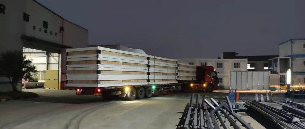 雅致集成在接到為香港隔離設(shè)施項(xiàng)目供應(yīng)部分打包箱房的生產(chǎn)任務(wù)后,迅速啟動(dòng)應(yīng)急響應(yīng)機(jī)制,成立重大項(xiàng)目指揮小組,快速協(xié)調(diào)各方資源,從廊坊、成都、武漢、常熟生產(chǎn)基地調(diào)集生產(chǎn)安裝人員到佛山箱房生產(chǎn)基地,優(yōu)先保證援建香港廂房生產(chǎn)。2月22日,在接到生產(chǎn)任務(wù)的2天內(nèi),首批雅致集成援港打包箱產(chǎn)品順利從佛山三水出廠,并于當(dāng)晚在中山黃圃港碼頭完成交付運(yùn)往項(xiàng)目現(xiàn)場。目前,第二批打包箱產(chǎn)品正在有序生產(chǎn),即將發(fā)往項(xiàng)目現(xiàn)場。