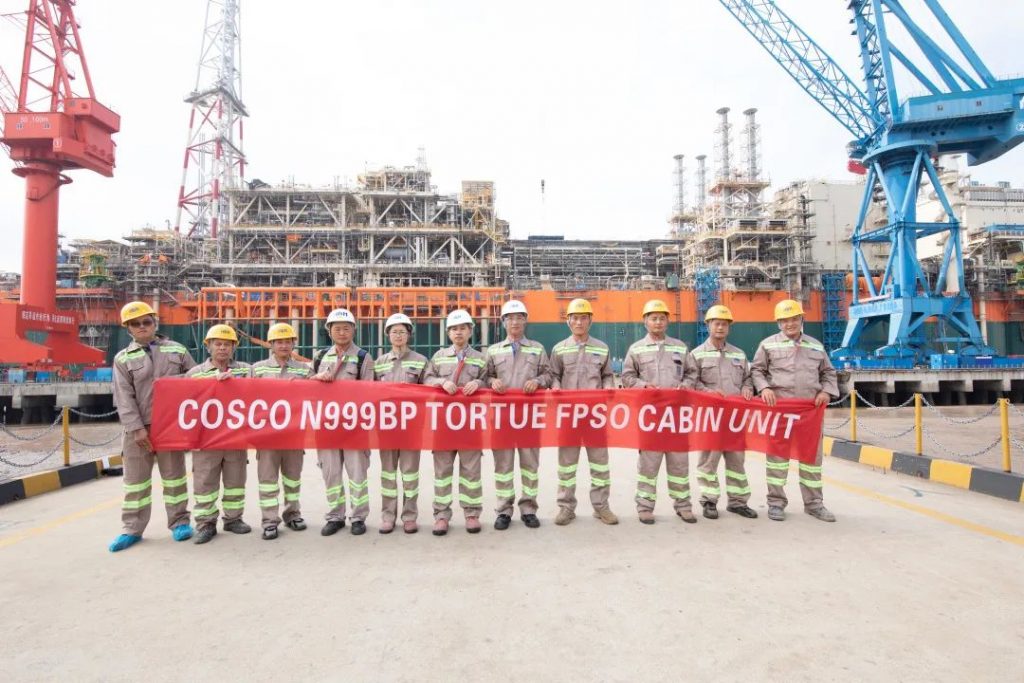 2023.011月19日,由華南建材參與承建的世界最大天然氣處理浮式生產(chǎn)儲(chǔ)卸油船N999 FPSO完成交付。這是中國船企首次為歐洲一流石油公司非洲項(xiàng)目建造的浮式生產(chǎn)儲(chǔ)卸油船,也是世界上天然氣日處理量最大的平臺(tái)。