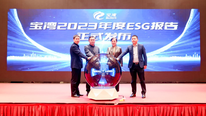 開幕式上,王繼祥、馮海虹、郭福元,寶灣物流客戶代表劉亮共同點(diǎn)亮水晶球,宣布《寶灣2023年度ESG報(bào)告》正式發(fā)布。