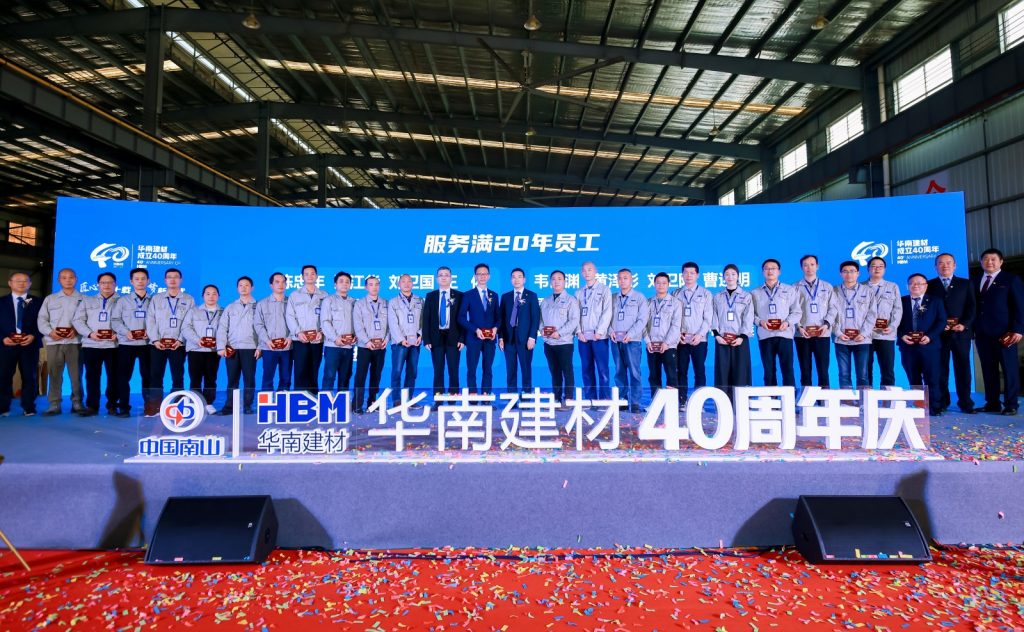 活動當(dāng)日,與會人員參觀了華南建材展廳和生產(chǎn)車間,并共同觀看華南建材宣傳片、合作伙伴和項目組祝賀視頻,華南建材員工代表分享成長歷程,見證華南建材乘風(fēng)破浪、砥礪前行的四十載歷程。大會特別表彰華南建材十年和二十年在崗的資深員工。