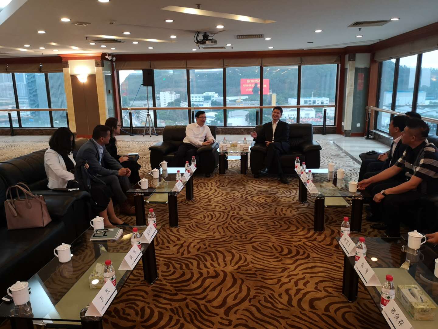 2019.055月4日下午,王世云總經(jīng)理在赤灣石油大廈會(huì)見(jiàn)貴州省投資促進(jìn)局局長(zhǎng)馬雷一行,雙方就相關(guān)議題進(jìn)行了深入友好的交流。南山控股副總經(jīng)理焦賢才、貴州省駐廣深辦副主任林小美陪同會(huì)見(jiàn)。
