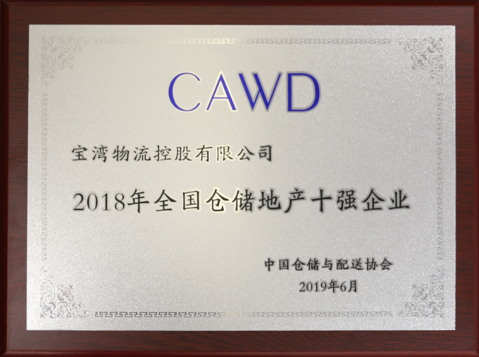 2019.076月20日,在上海舉辦的第十四屆中國倉儲配送大會上,南山控股旗下寶灣物流榮獲“2018年全國倉儲地產(chǎn)十強企業(yè)”稱號。