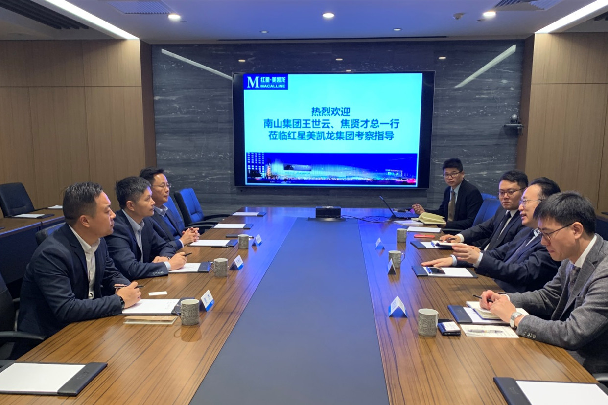 王世云對紅星美凱龍的熱情接待表示感謝,并向蔣小忠介紹了中國南山集團以及南山控股的發(fā)展情況與產(chǎn)業(yè)布局,并希望雙方在產(chǎn)城融合、綜合物流等領(lǐng)域展開更多的合作。