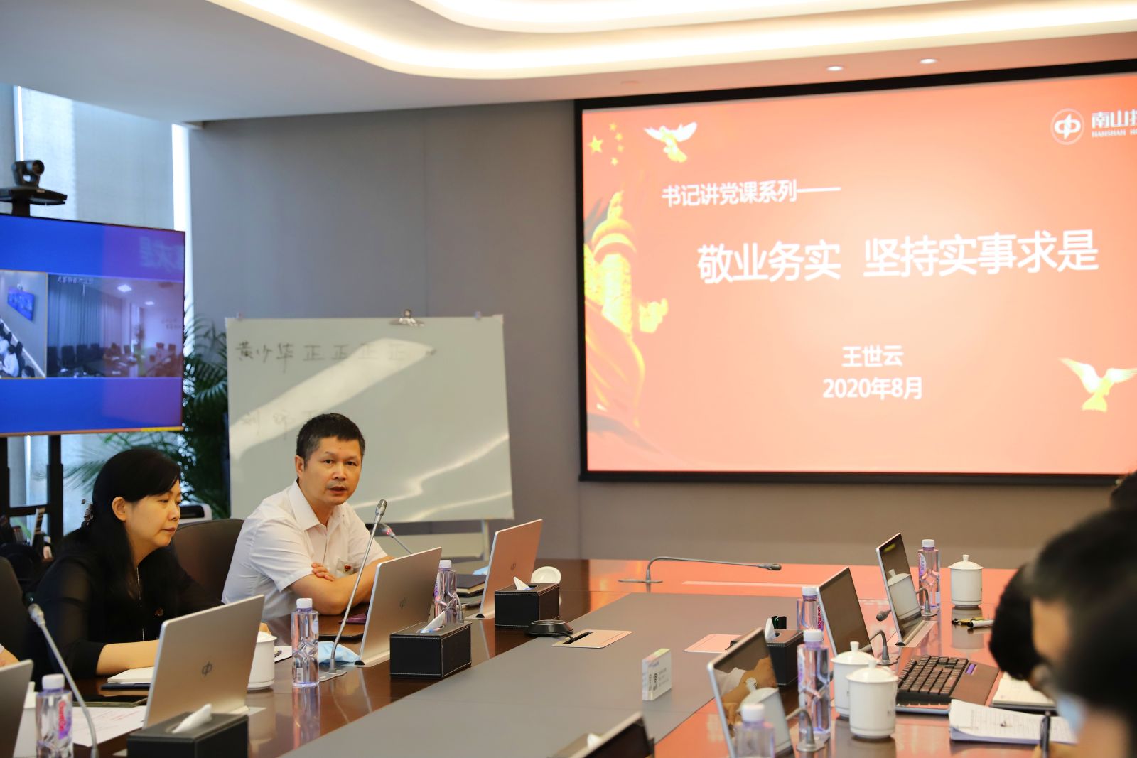 2020.08為進(jìn)一步加強(qiáng)黨的基層組織建設(shè),發(fā)揮黨組織的戰(zhàn)斗堡壘作用,8月13日,南山控股總部黨總支部在赤灣總部大廈26樓第一會(huì)議室召開黨員大會(huì),開展總部黨總支部紀(jì)檢委員補(bǔ)選和黨員學(xué)習(xí)教育活動(dòng)。會(huì)議由南控總部黨總支部組織委員蔣俊雅同志主持,南控總部黨總支書記王世云同志以《敬業(yè)務(wù)實(shí) 堅(jiān)持實(shí)事求是》為題講了黨課。